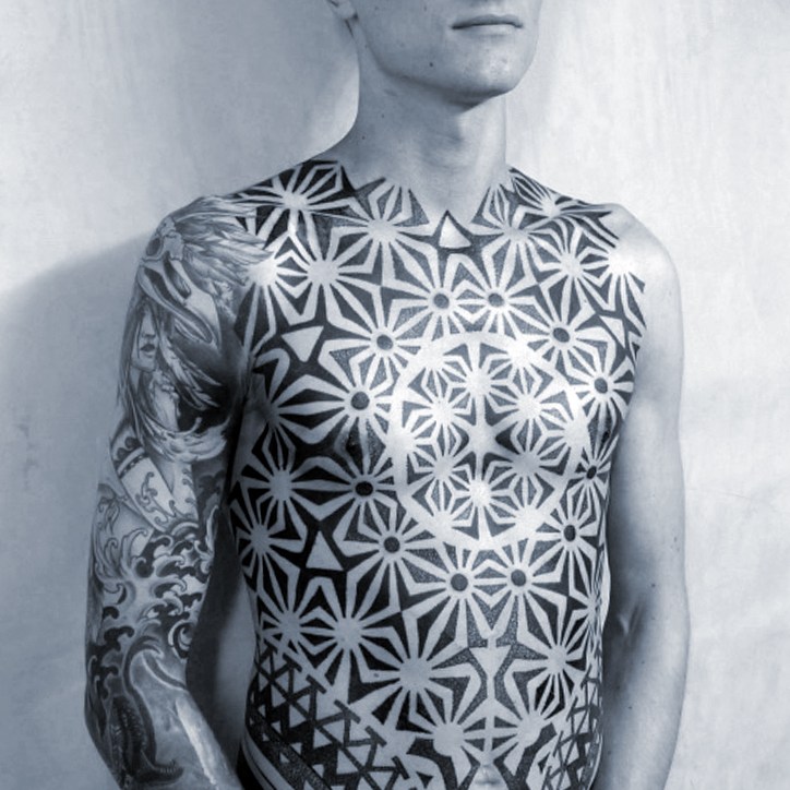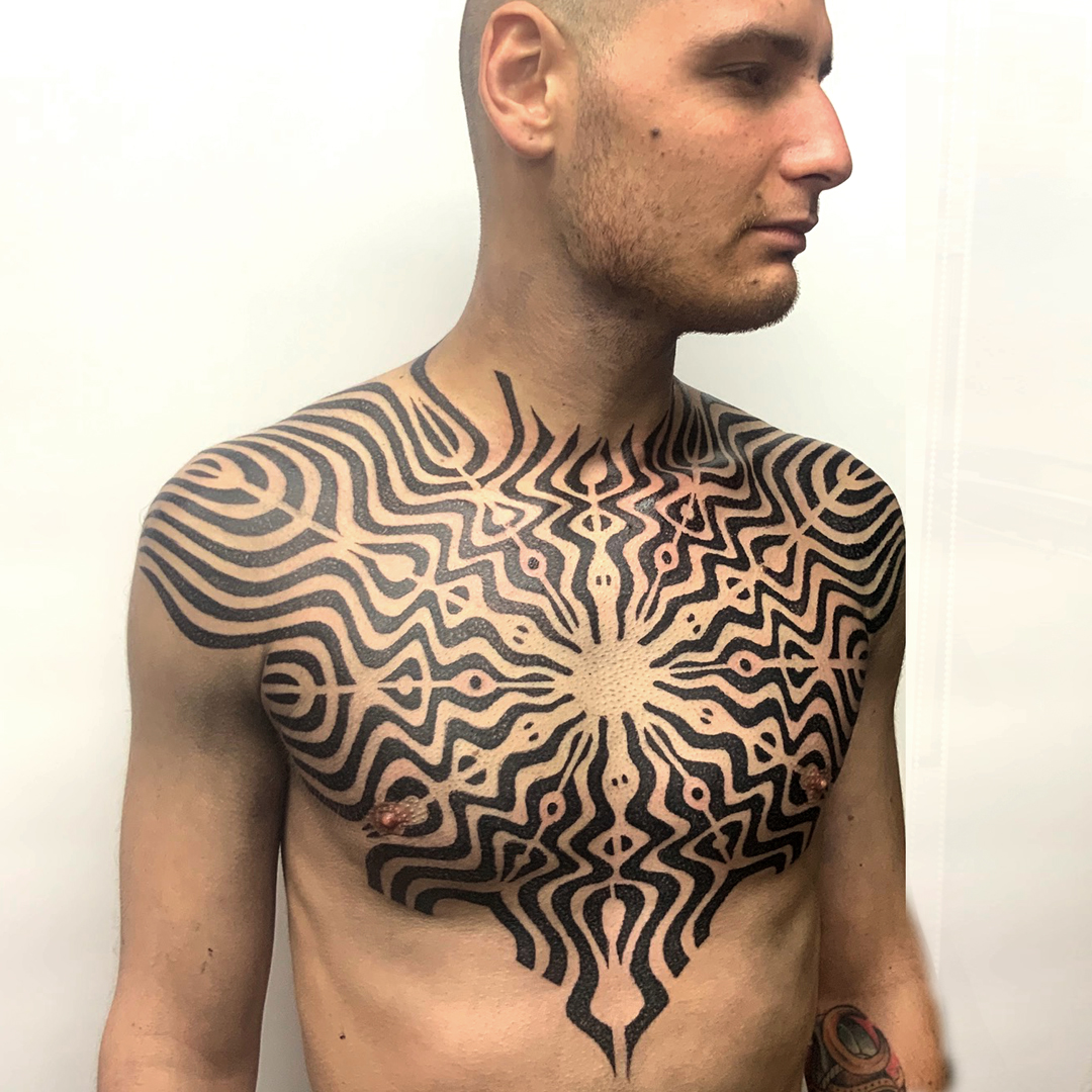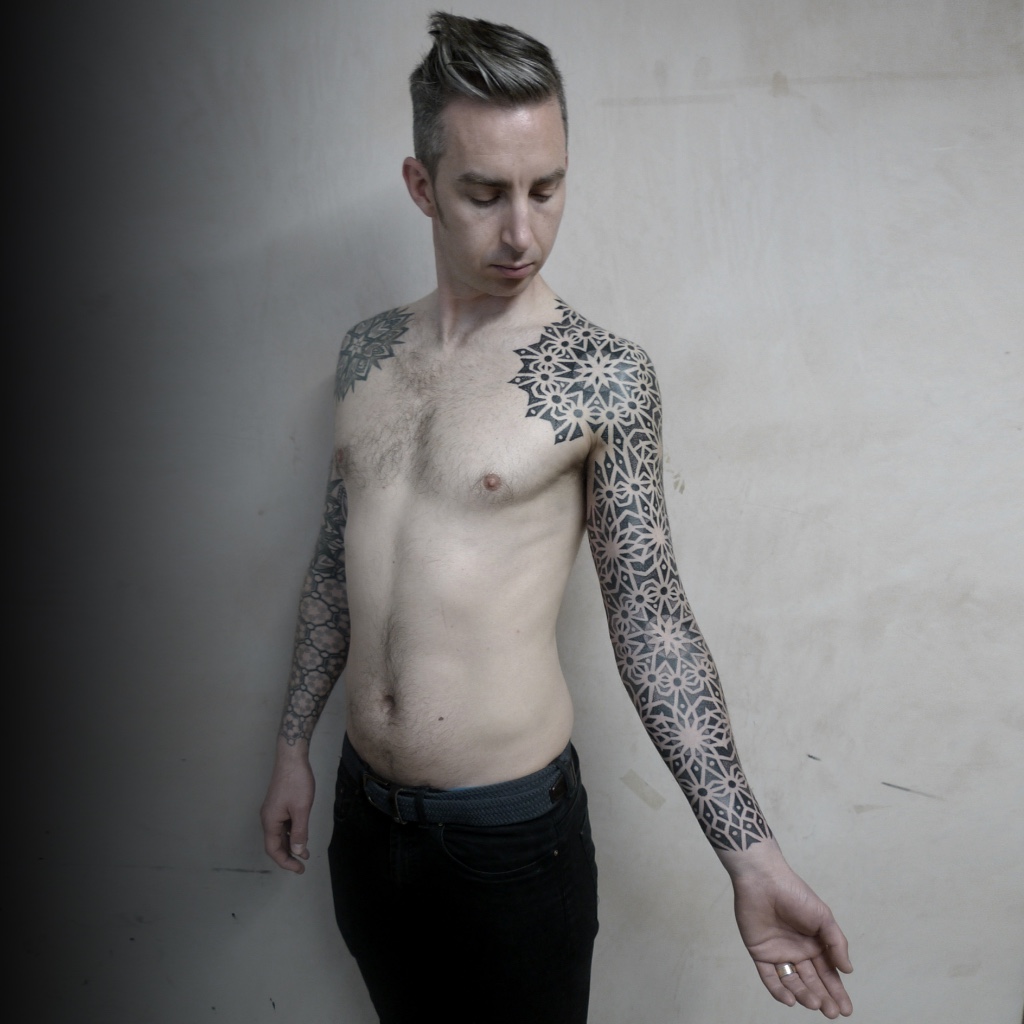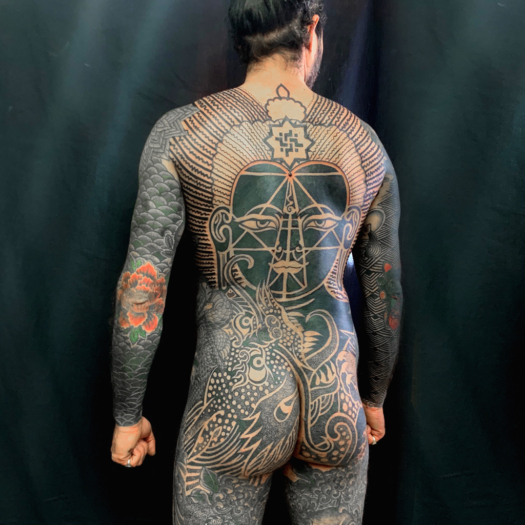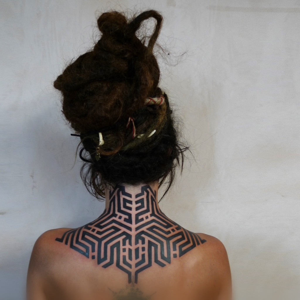 Tomas Tomas 108 started tattooing in the mid-nineties in Manchester UK. After a traditional apprenticeship, he moved to London in 1999 to work at Bug’s “Evil From the Needle” for a few years. He then joined Alex Binnie’s team at the “IN2U tattoo” shop. He worked there for over 15 years. While studying traditional tribal tattoos, he developed a more modern style involving dotwok and complex geometric designs. He is today considered a pioneer in this style which is now very popular worldwide. Now in Kumagaya Japan at BLACK MOON TATTOO, he enjoys doing large scale work, but also smaller “one point” tattoos .