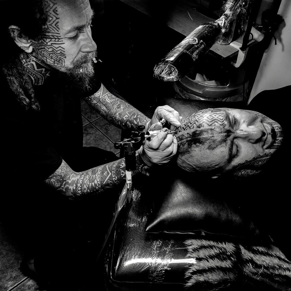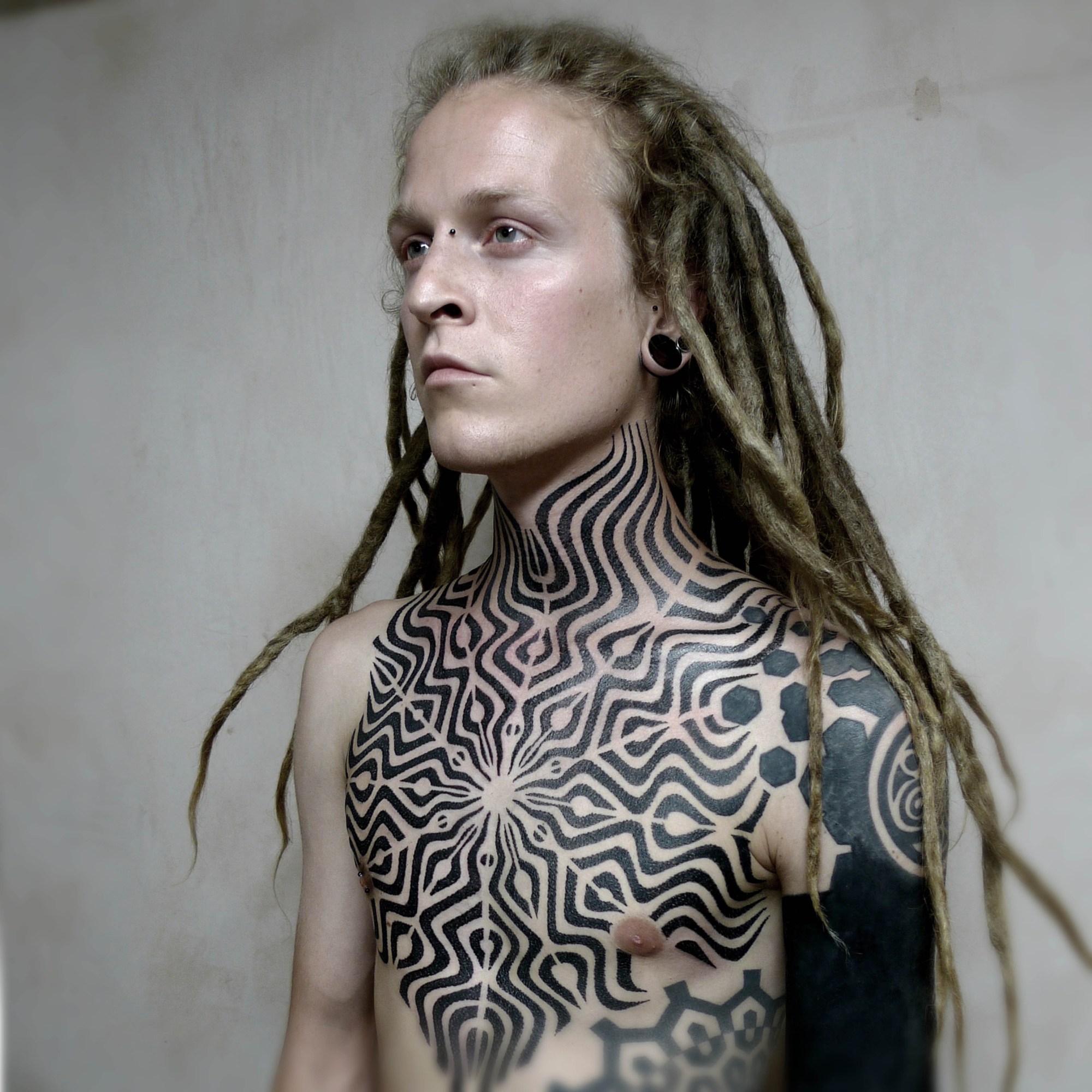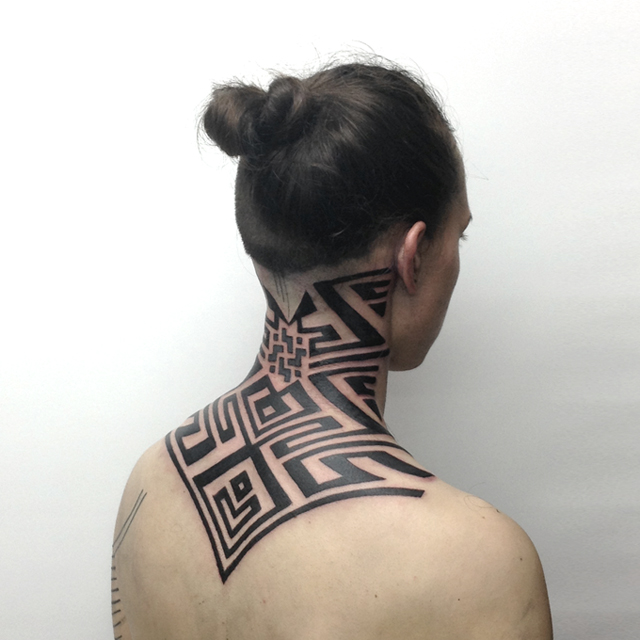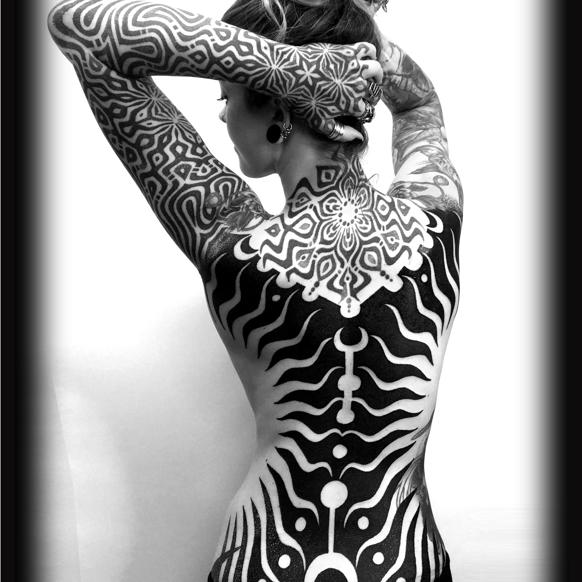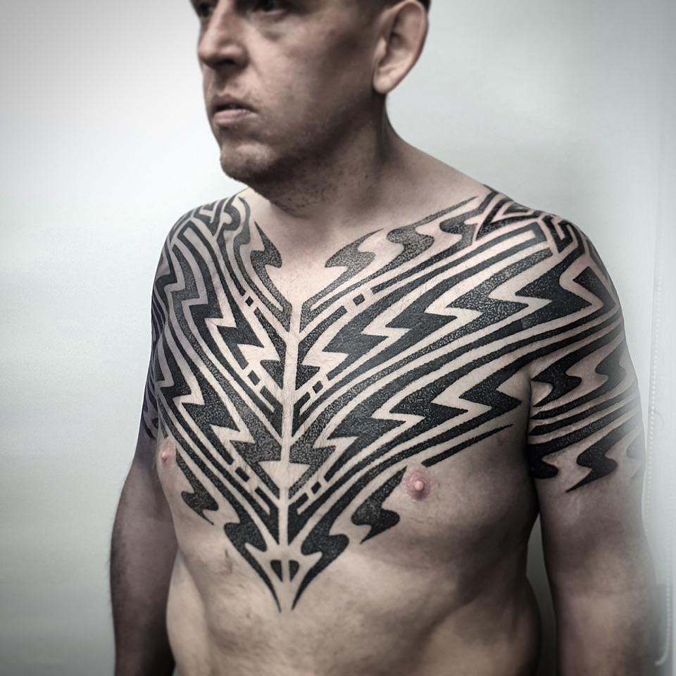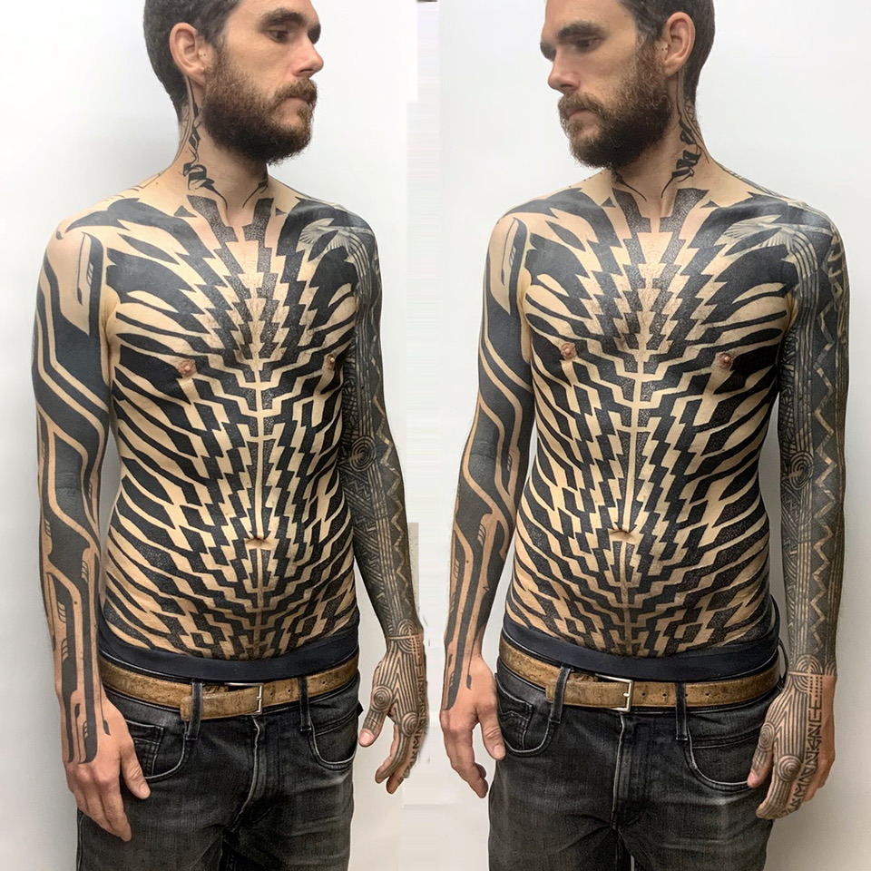 Tomas Tomas 108 started tattooing in the mid-nineties in Manchester UK. After a traditional apprenticeship, he moved to London in 1999 to work at Bug’s “Evil From the Needle” for a few years. He then joined Alex Binnie’s team at the “IN2U tattoo” shop. He worked there for over 15 years. While studying traditional tribal tattoos, he developed a more modern style involving dotwok and complex geometric designs. He is today considered a pioneer in this style which is now very popular worldwide. Now in Kumagaya Japan at BLACK MOON TATTOO, he enjoys doing large scale work, but also smaller “one point” tattoos .