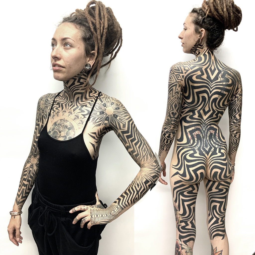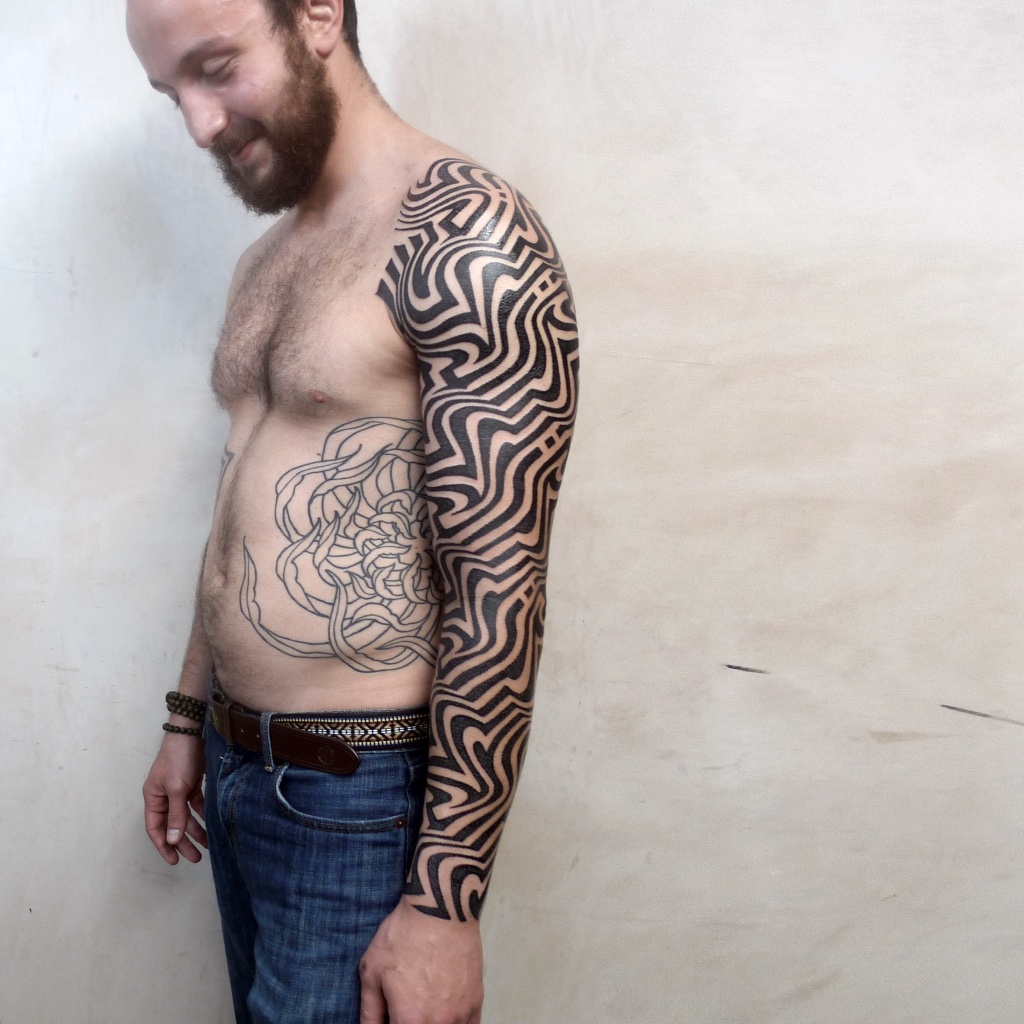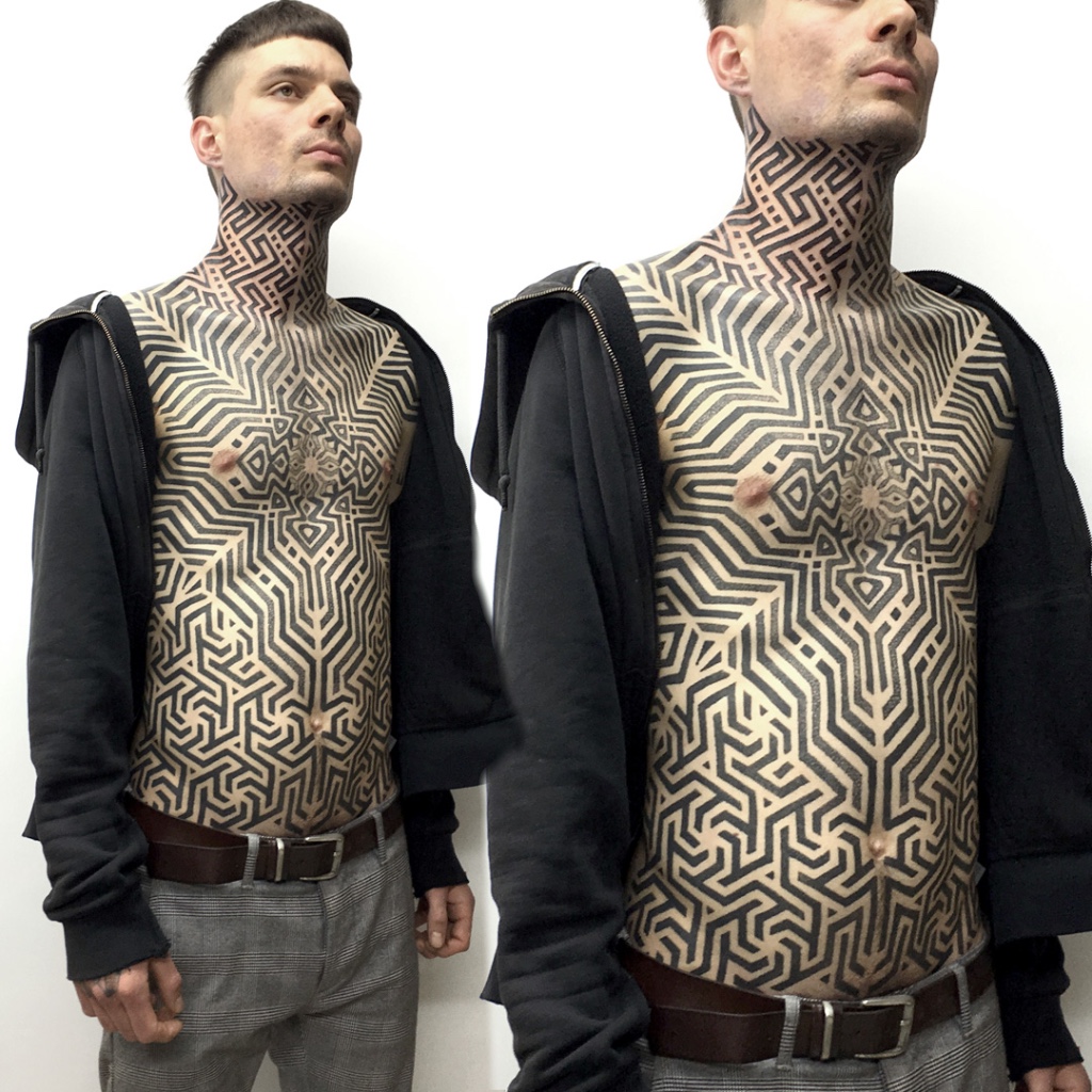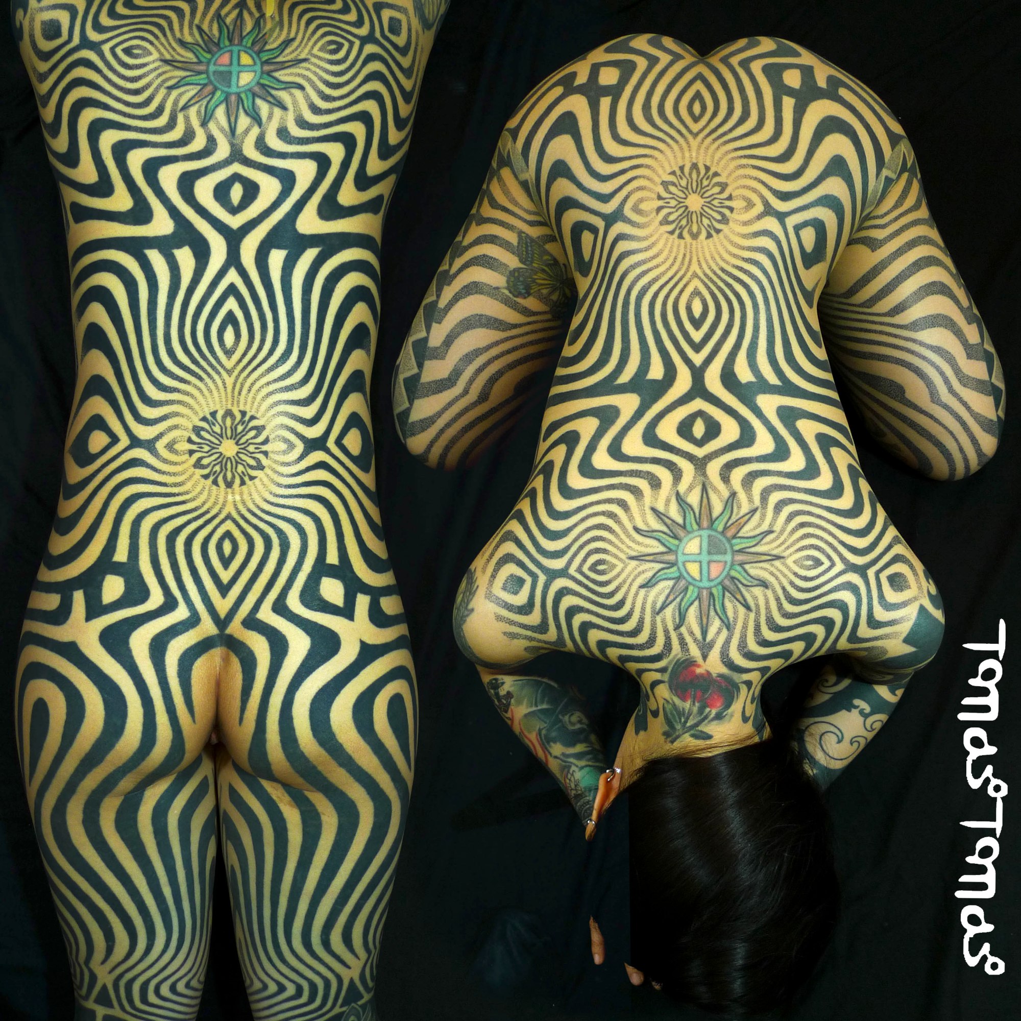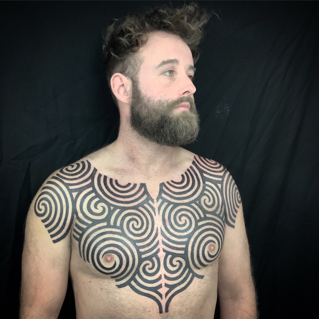 Tomas Tomas 108 started tattooing in the mid-nineties in Manchester UK. After a traditional apprenticeship, he moved to London in 1999 to work at Bug’s “Evil From the Needle” for a few years. He then joined Alex Binnie’s team at the “IN2U tattoo” shop. He worked there for over 15 years. While studying traditional tribal tattoos, he developed a more modern style involving dotwok and complex geometric designs. He is today considered a pioneer in this style which is now very popular worldwide. Now in Kumagaya Japan at BLACK MOON TATTOO, he enjoys doing large scale work, but also smaller “one point” tattoos .